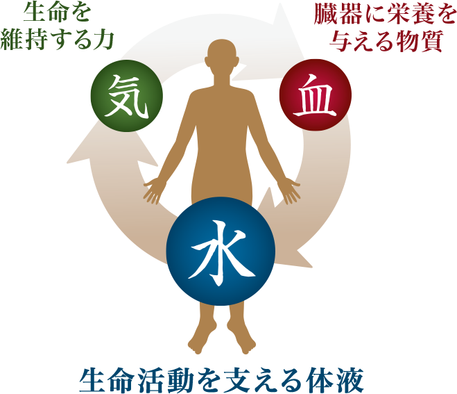 東洋医学では、人のからだは「気・血・水」という三つの流れで成り立つと考えられています。