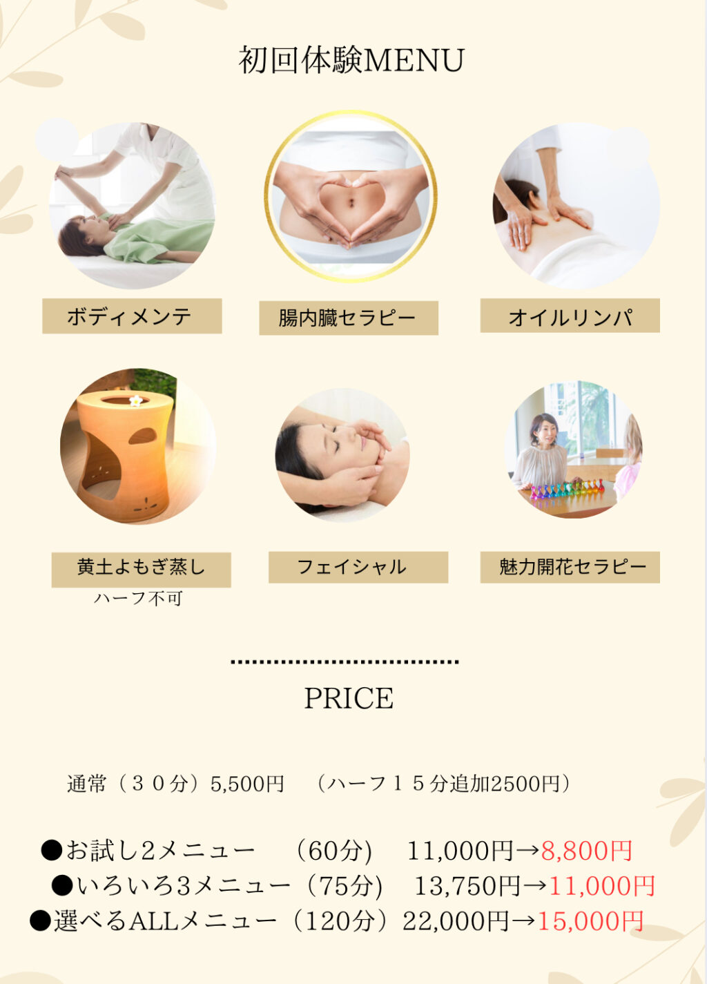 「ちょっとご褒美」感覚で受けられる体験メニューをご用意しています。